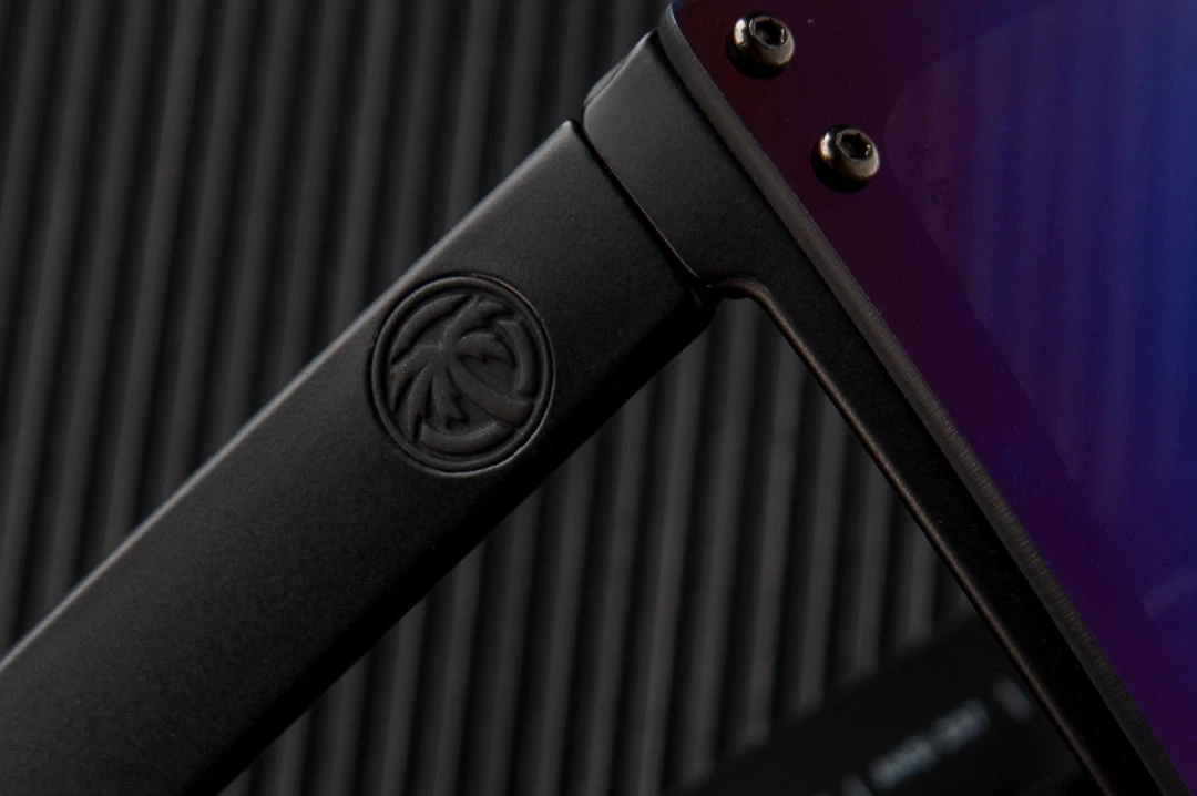 Our classic semi-gloss black arms with metal emblem inlays.
